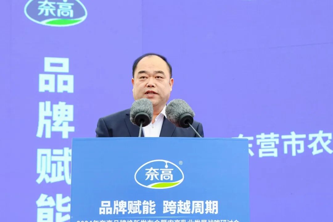 东营市农业农村局党组成员、东营市现代畜牧业发展服务中心党委总支书记、主任刘志强表示,2021年10月,习近平总书记视察东营和黄三角农高区,为黄河三角洲生态保护和高质量发展把舵领航,赋予东营、黄三角农高区新的使命。近年来,东营市利用沿黄、沿海和盐碱地资源,推动畜牧业全产业链高质量发展,产业转型升级加快,生态发展良好,安全保障提升。2023年,肉蛋奶总产量84.46万吨,同比增长6.53%,畜牧业产值115亿元,增速6.3%,多项指标居全省前列。奶业作为优势产业,推进“五化”建设,形成全产业链发展格局,奶牛存栏8.8万头,牛奶产量47.7万吨,平均年单产11.7吨,达到发达国家水平。农高乳业作为唯一国营乳品企业,生产“奈高”等品牌产品,深受消费者喜爱。农高乳业在现代畜牧业全产业链中发挥重要作用。东营市将牢记总书记嘱托,打造“黄河三角洲奶都”,建设优质奶牛繁育中心,推进优质牧草带建设,推动乳制品加工企业发展,探索奶业振兴“东营模式”,助力全国奶业振兴,满足人民对营养安全食物的需求。